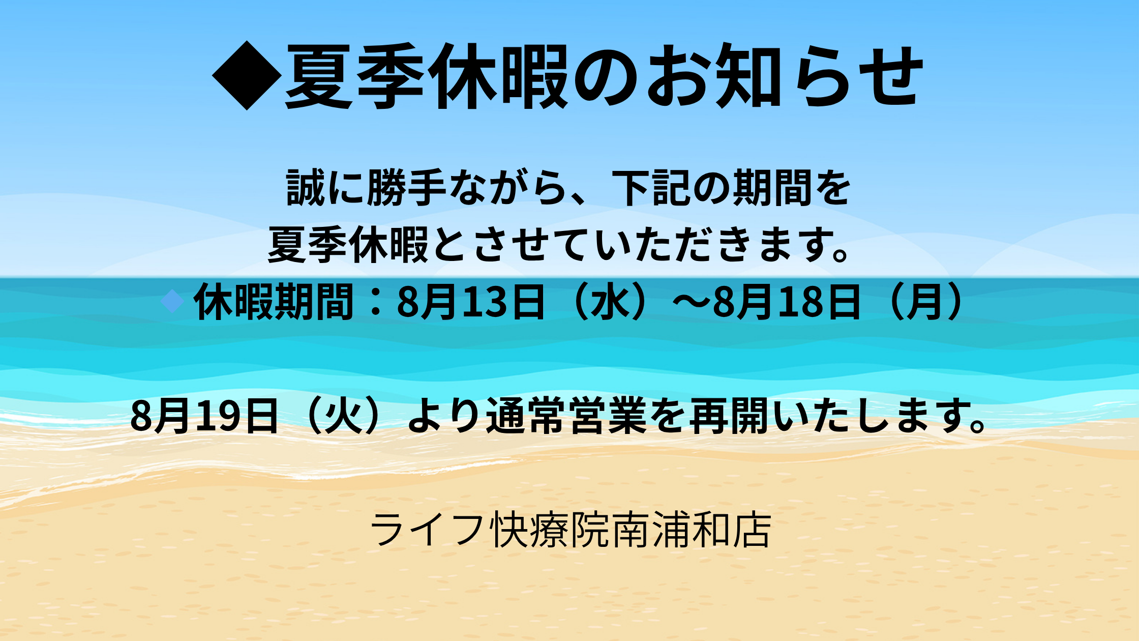 お知らせいつもライフ快療院南浦和本店をご利用いただき、誠にありがとうございます😊
